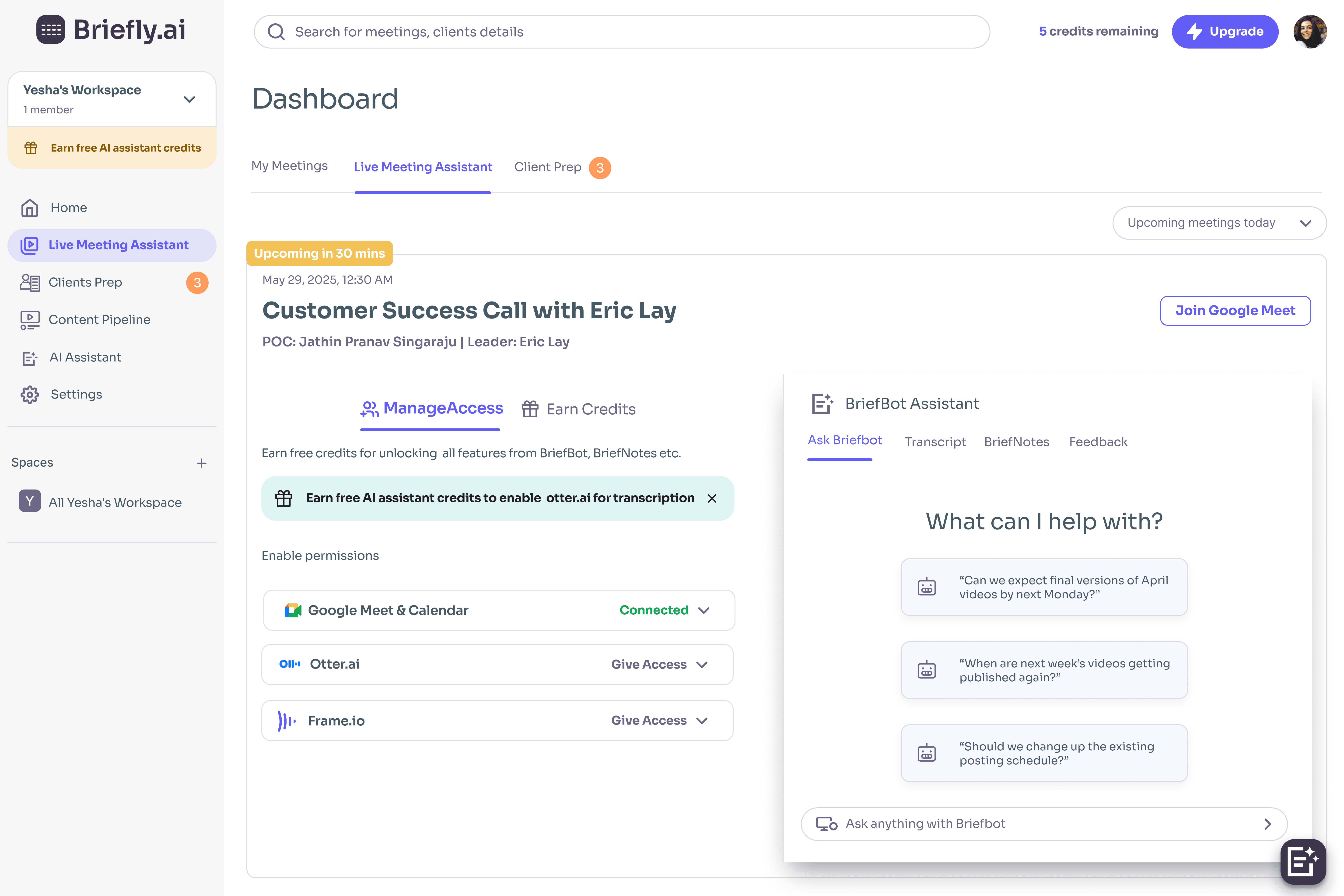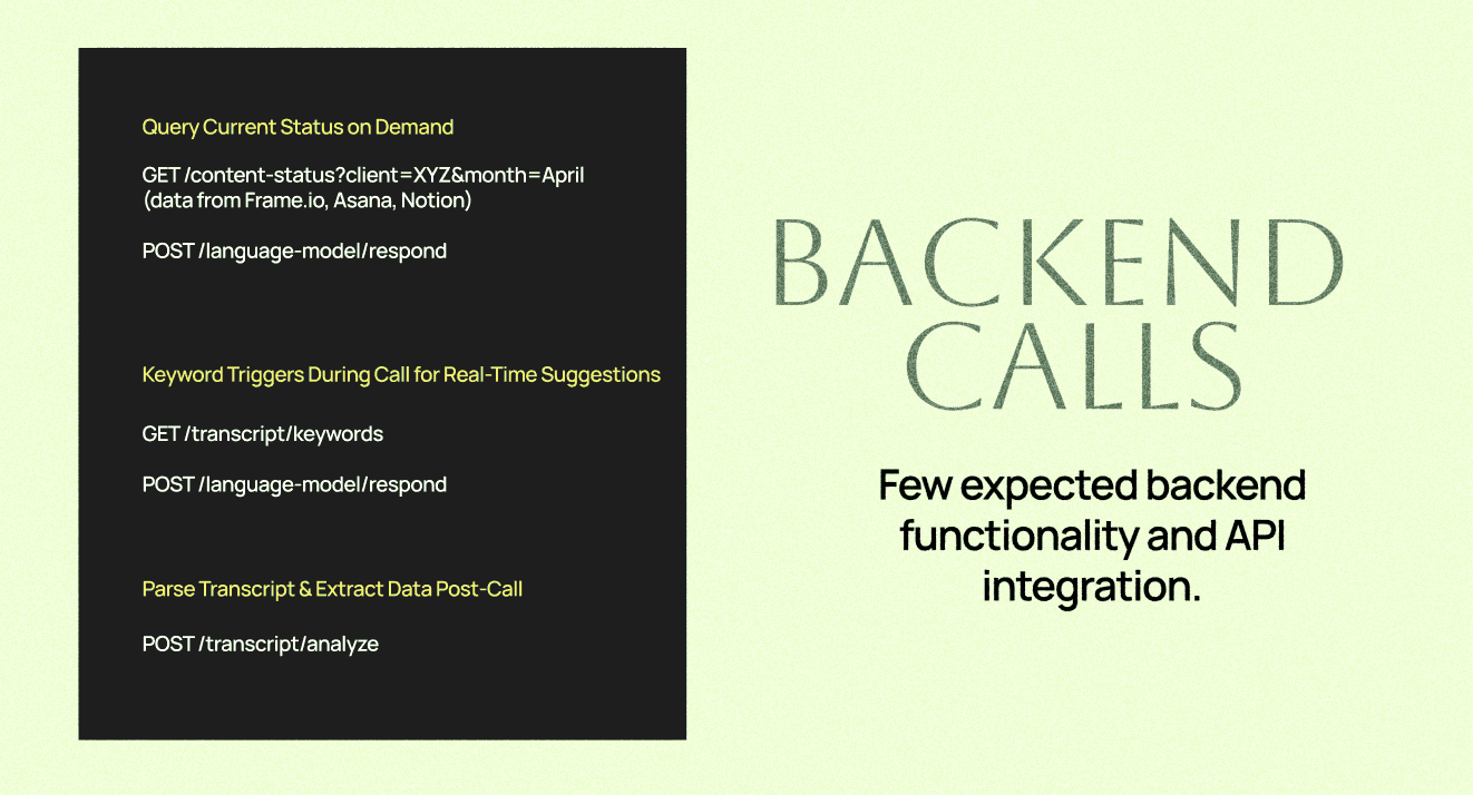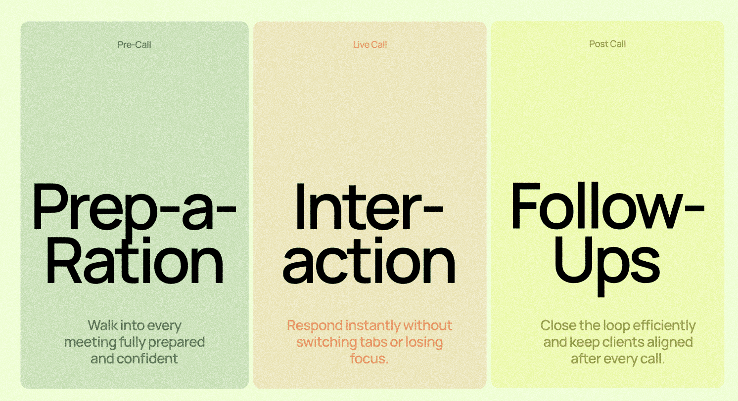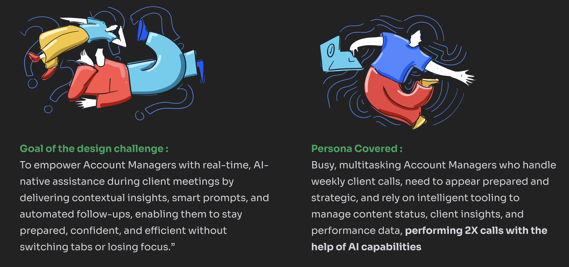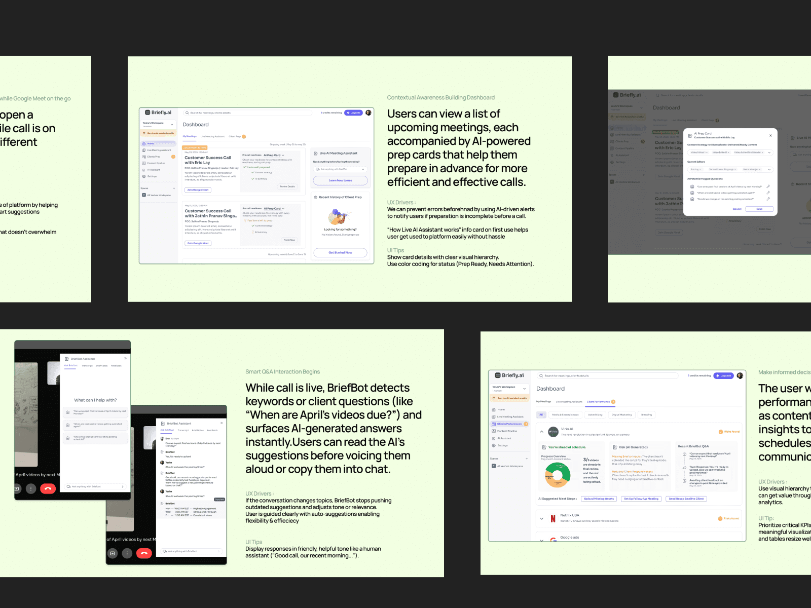 BriefBot is an AI-powered assistant that transforms chaotic client calls into structured briefs in real time. I was brought in as the sole product designer to turn this concept into a working prototype used in investor demos and early agency pilots.