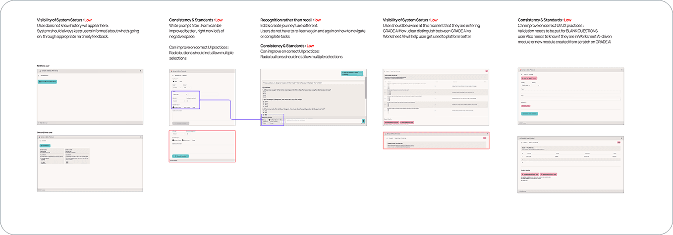 Heuristic evaluation of live version revealed critical usability gaps: poor error prevention, inconsistent IA, and cognitive overload—requiring immediate UX optimization