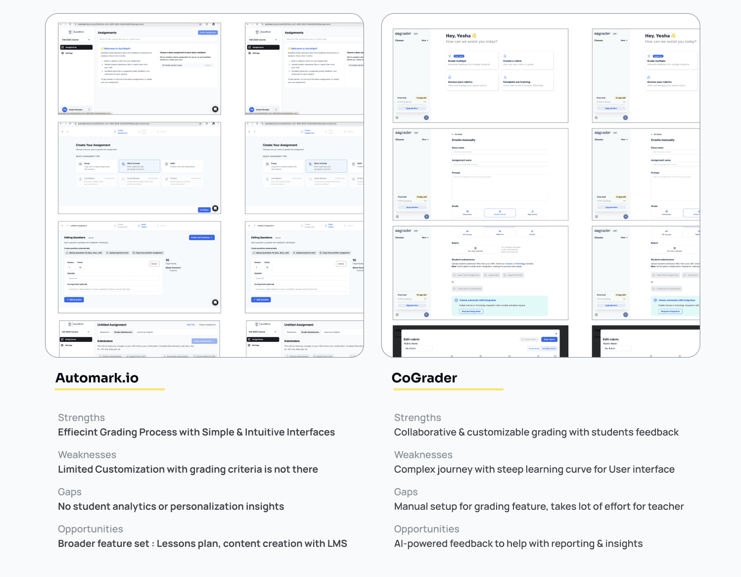 Compared two leading products in market with their AI-assisted workflows and UI layouts to ensure intuitive navigation