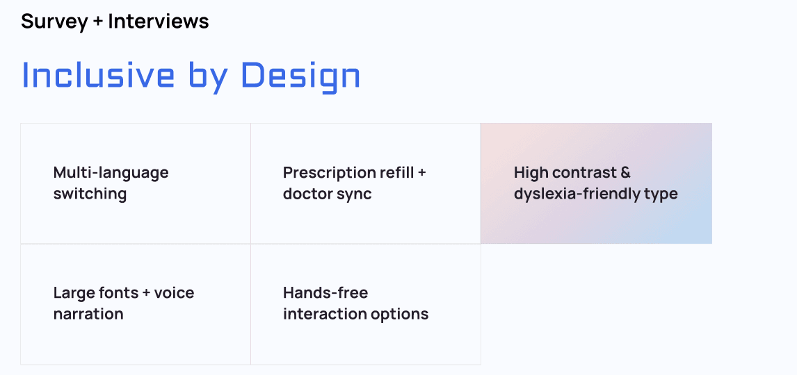 Design decisions prioritized accessibility from the start
